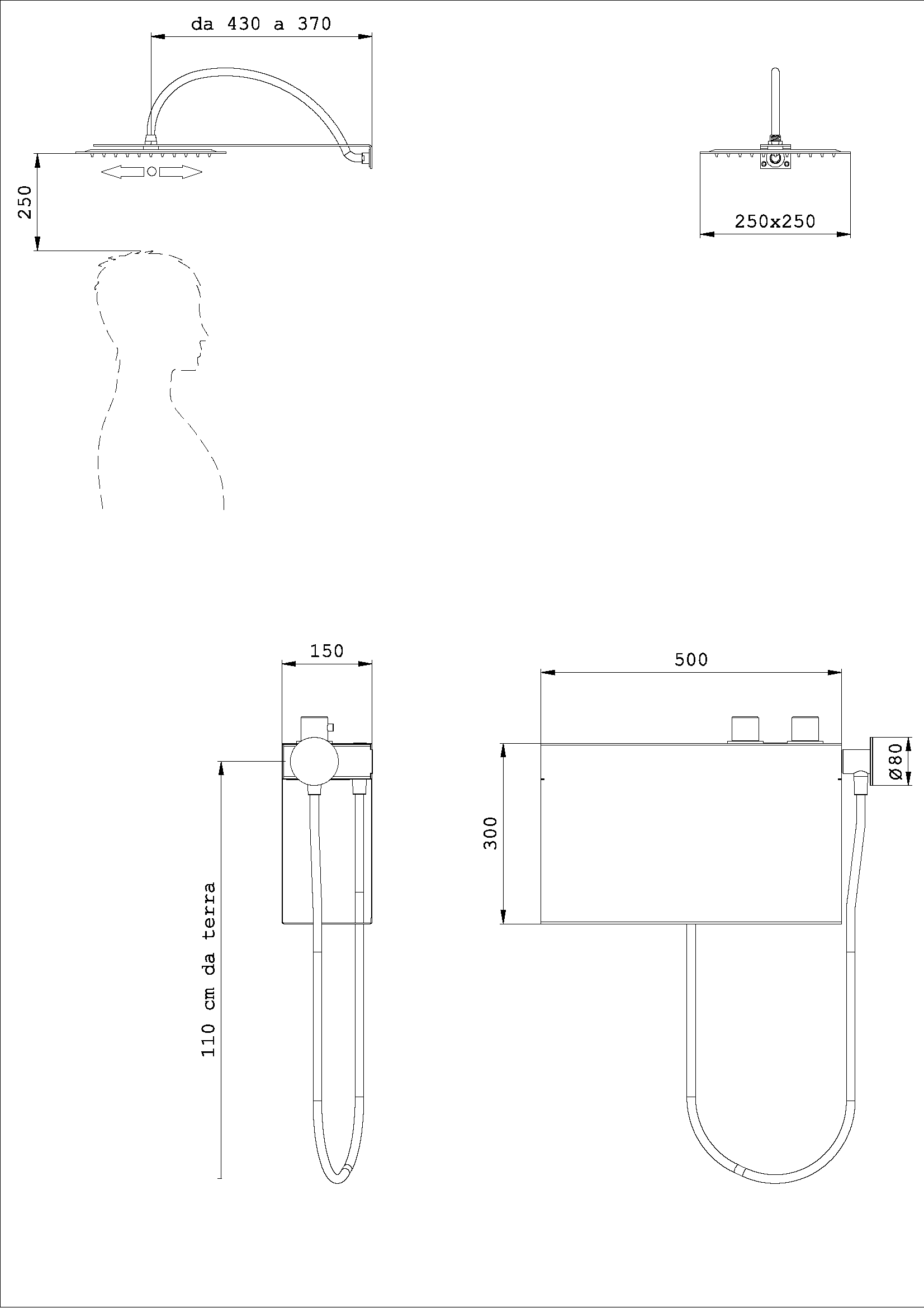 Il mobile è svincolato dalla parte superiore del ‘Kit doccia Alyssia quadro’ e può essere installato anche sulla parete laterale della doccia.