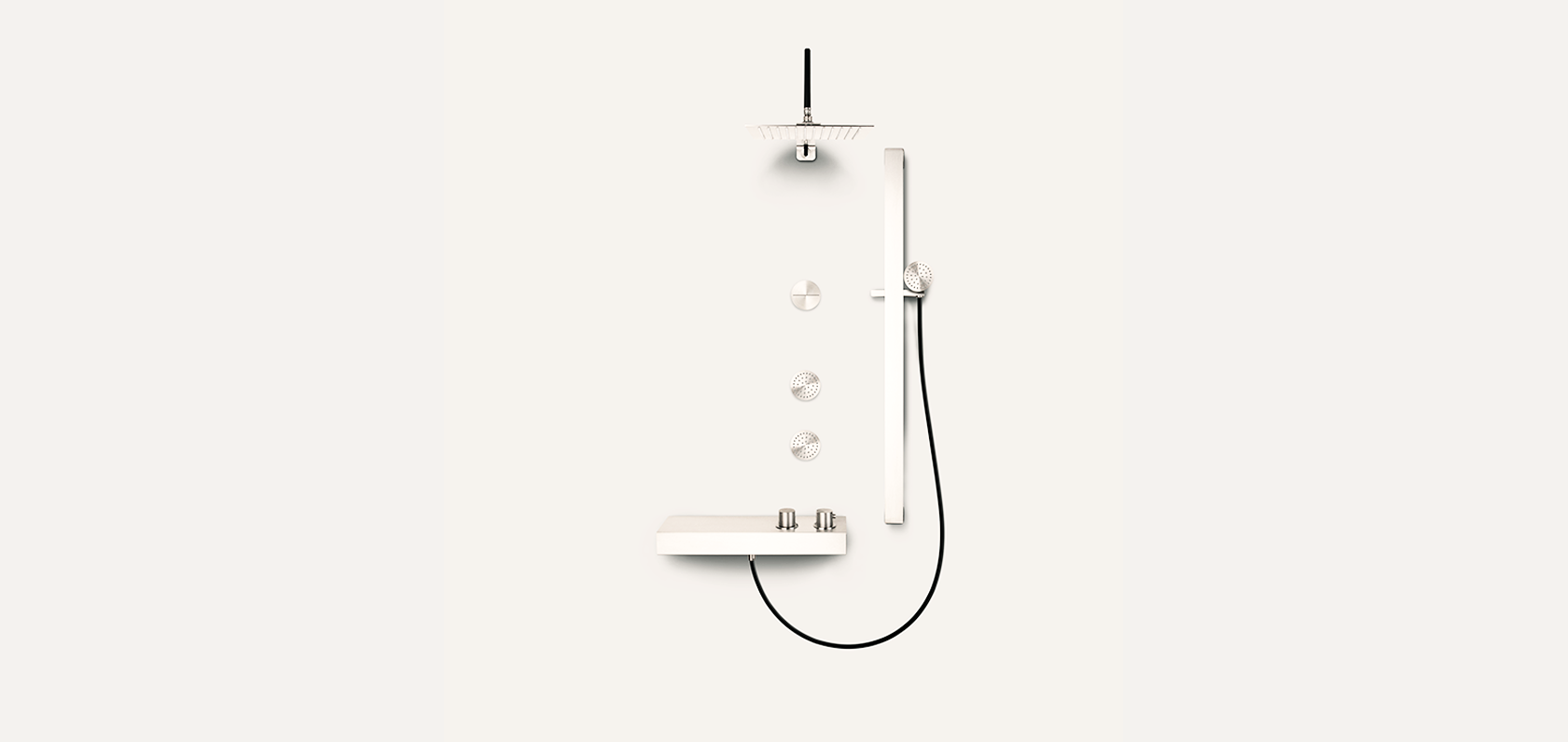 Saliscendi in Acciaio inox spazzolato composto da un’asta verticale nella quale è presente uno scorrevole porta doccetta.